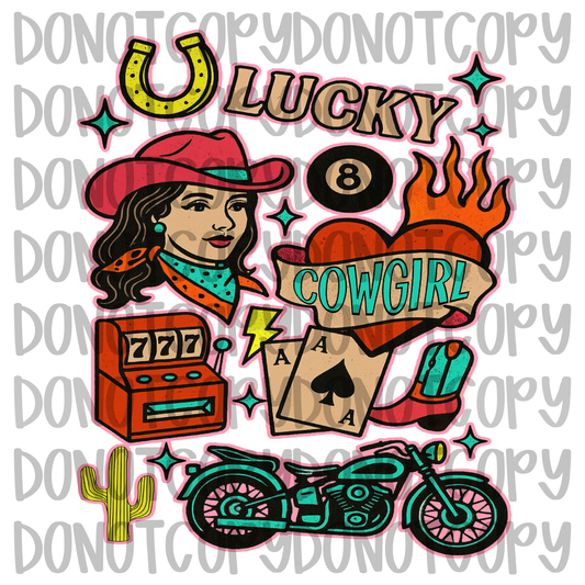 Lucky Cowgirl collage digital download png design