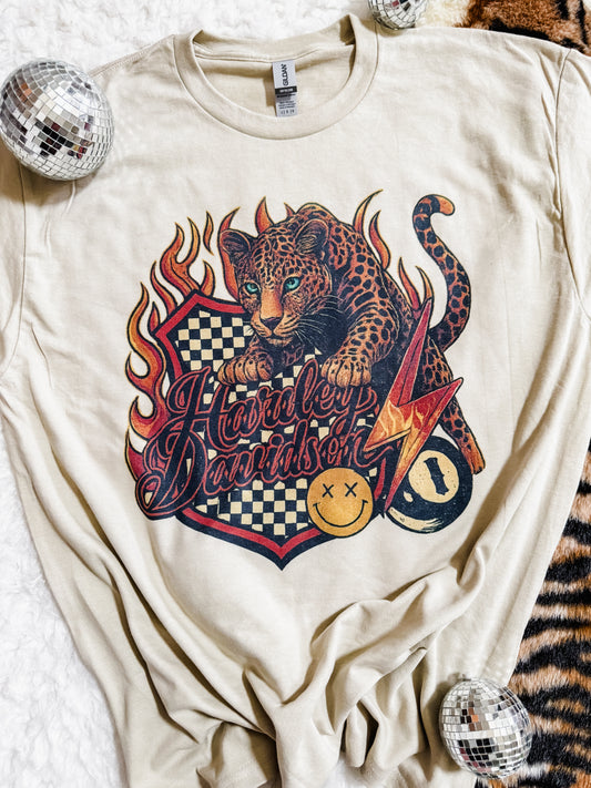Harley Davidson Leopard Graphic T-Shirt | Flames, Checkered & Retro Biker Tee