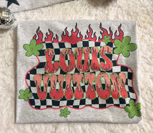 Retro Flames Graphic T-Shirt | Bold Checkerboard & Animal Print Design | Vintage Streetwear Tee
