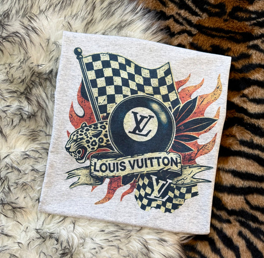 Vintage Racing Graphic T-Shirt | Checkered Flag, Jaguar & 8-Ball Design | Retro Streetwear Tee