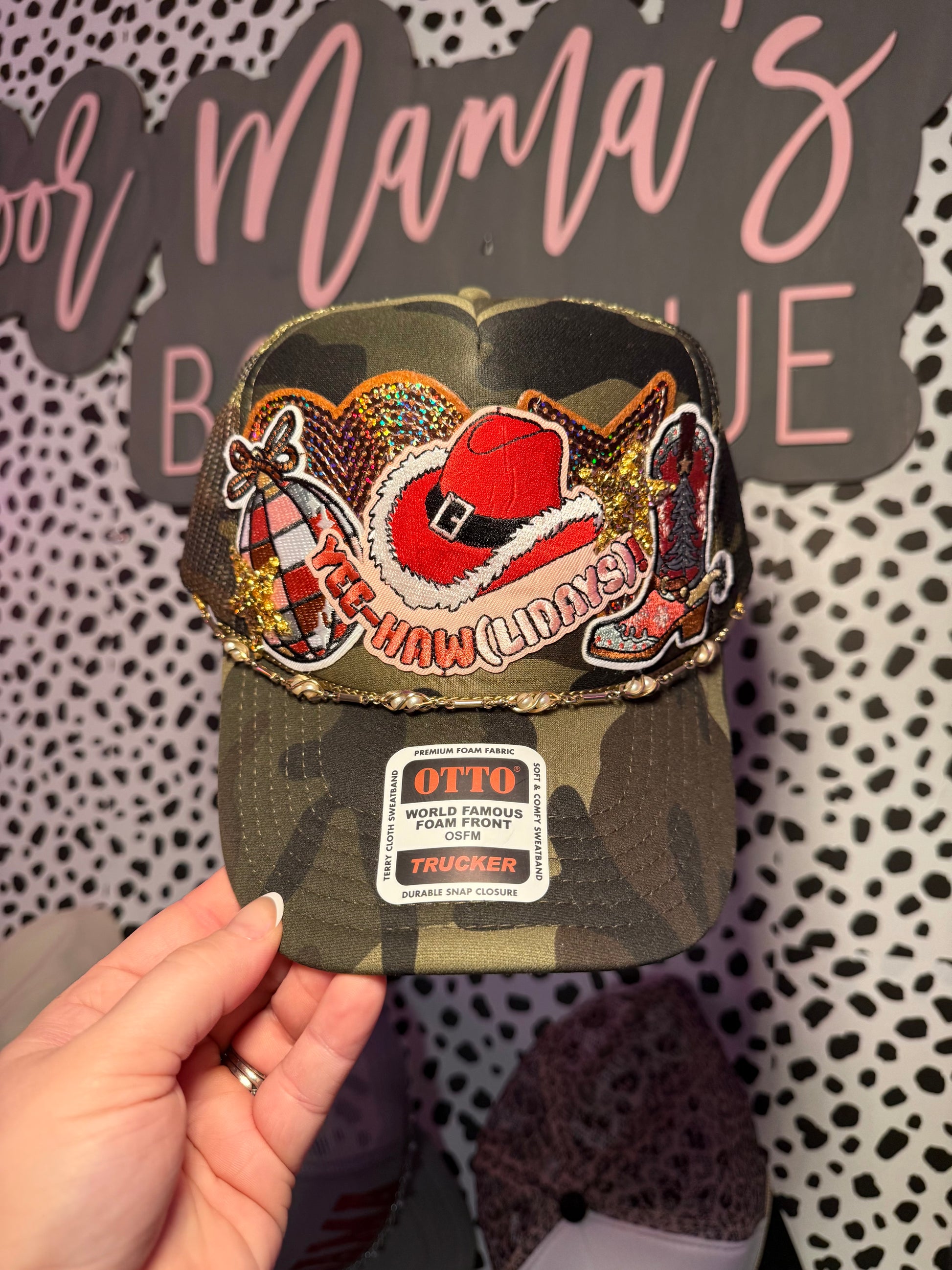 Camouflage yee-hawlidays western Christmas trucker hat